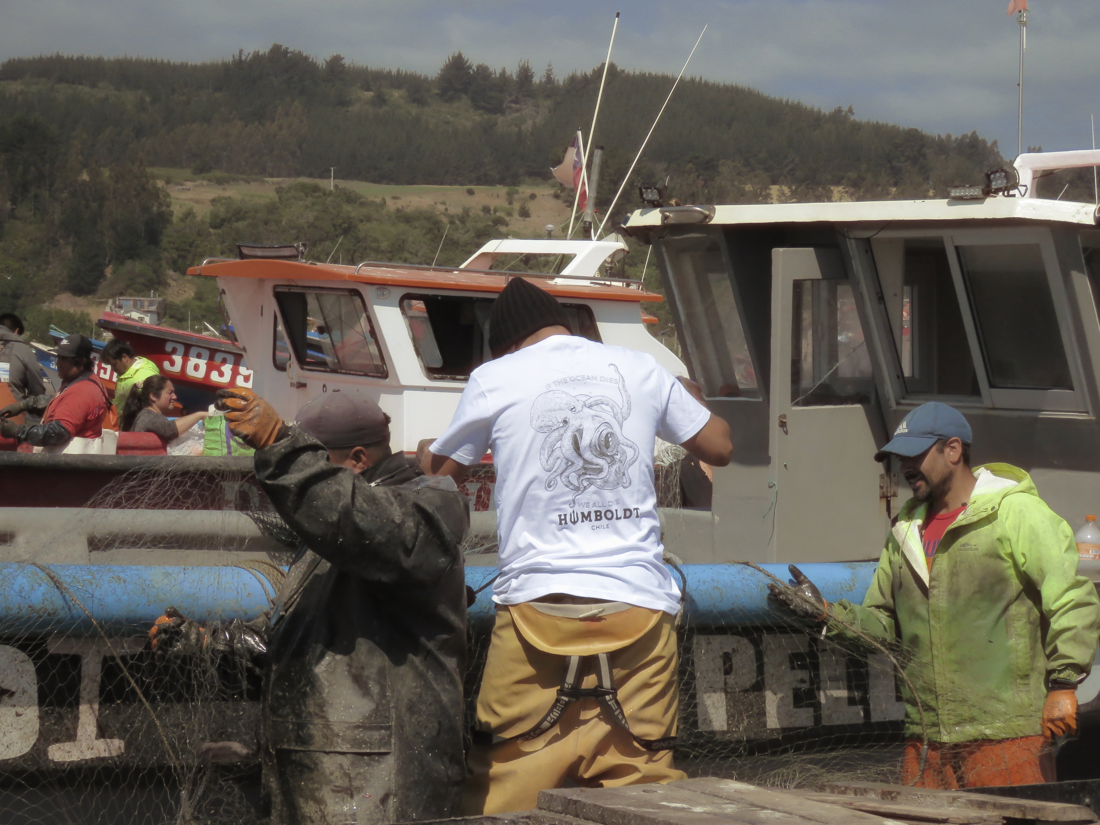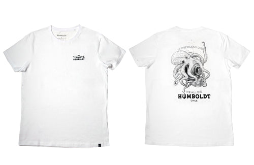Polera Blanca Manga Corta Pulpo